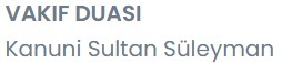 VAKIF DUASIHER KİMSE Kİ; Vakıflarımın bekasına özen ve gelirlerinin artırılmasına itina gösterirse, bağışlayıcı olan Allahu Teâlâ’nın huzurunda ameli güzel ve makbul ...